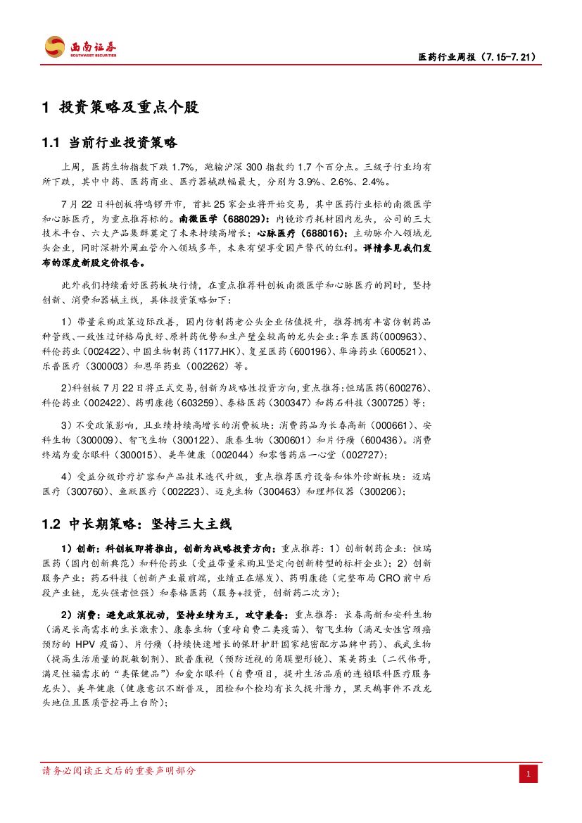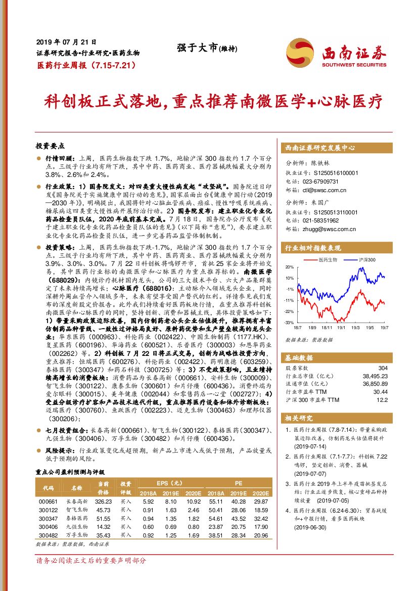 西南证券:医药行业周报:科创板正式落地,重点推荐南微医学+心脉医疗.pdf