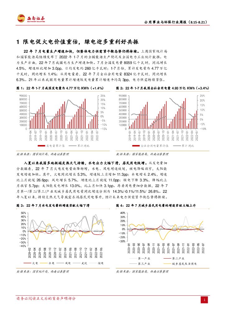 西南证券:公用事业与环保行业周报:限电促火电价值重估,绿电迎多重利好共振.pdf