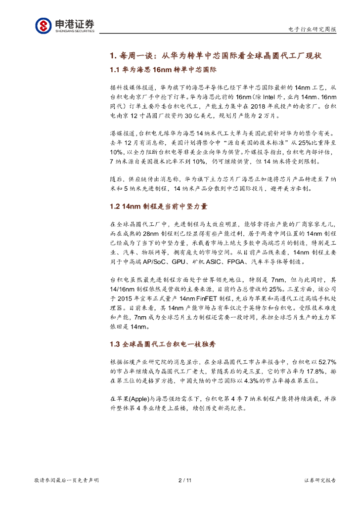 申港证券:电子行业研究周报:从华为转单中芯国际看全球晶圆代工厂现状.pdf