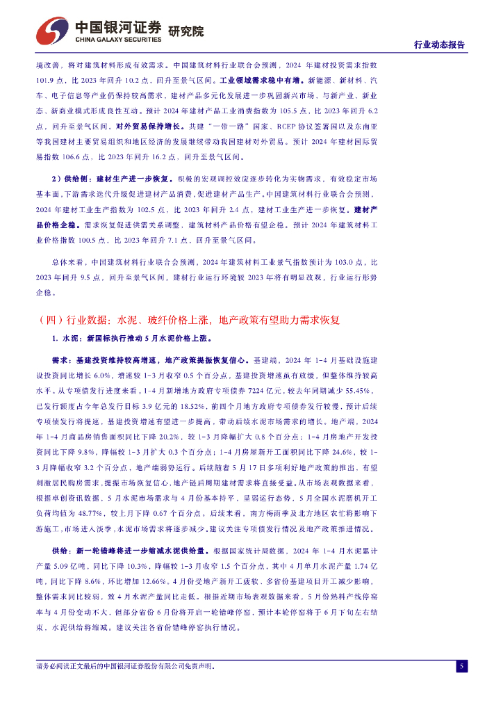 中国银河:建筑材料行业5月动态报告:玻纤、水泥价格上涨,地产政策助推需求恢复.pdf