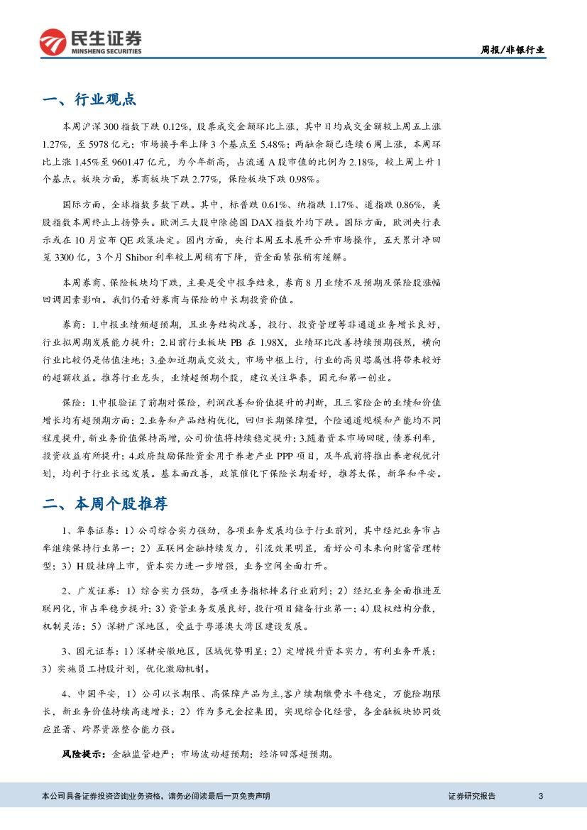 民生证券:非银行业周报:短期因素扰动,不改券商、保险中长期价值.pdf