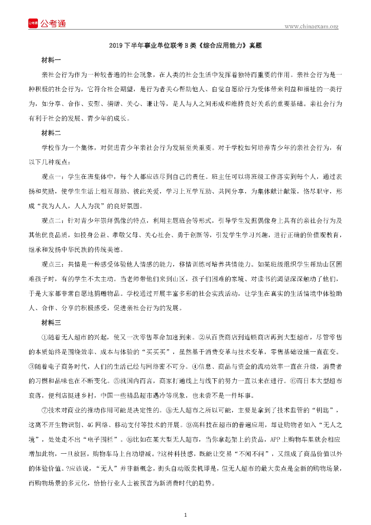 2019下半年事业单位联考B类《综合应用能力》真题.pdf