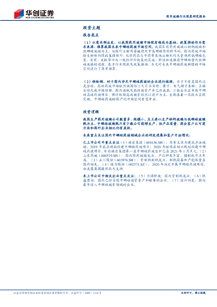 华创证券:药用玻璃行业深度研究报告——政策推动药玻升级,国产中硼硅产品期待突破.pdf