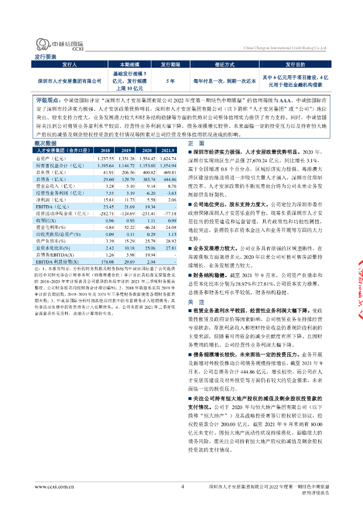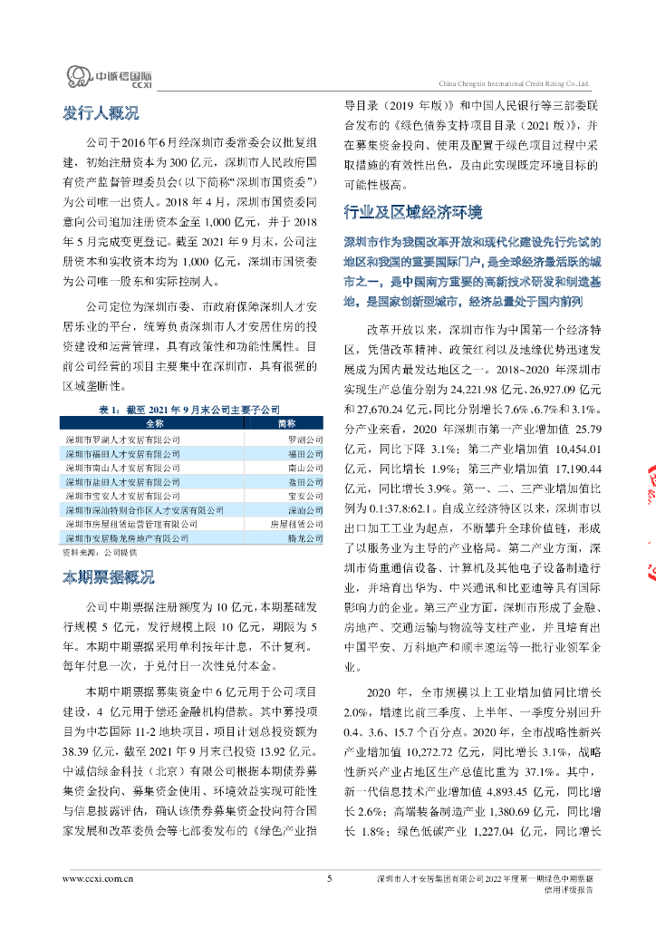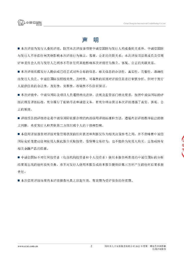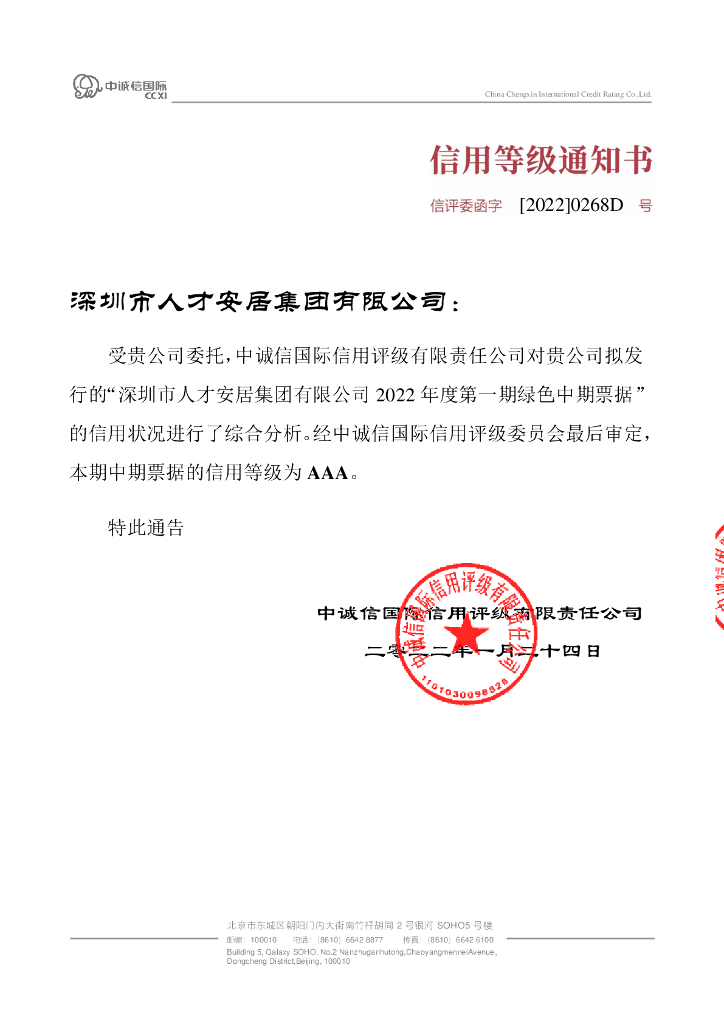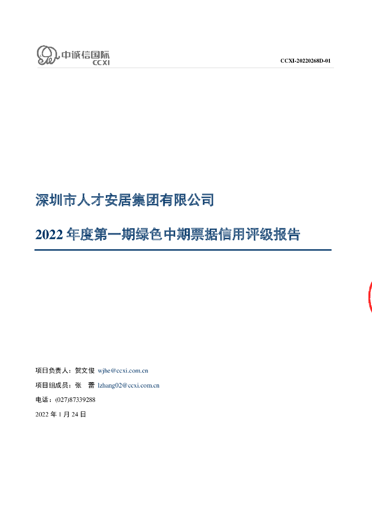 中诚信:深圳市人才安居集团有限公司2022年度第一期绿色中期票据信用评级报告及跟踪评级安排.pdf