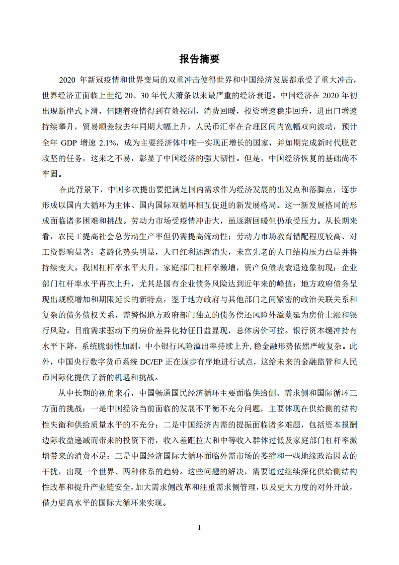 上海财经大学IAR:中国宏观经济形势分析与预测年度报告(2020-2021).pdf