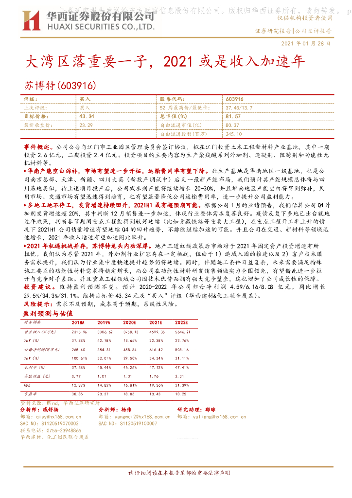 华西证券:苏博特(603916)-大湾区落重要一子,2021或是收入加速年.pdf