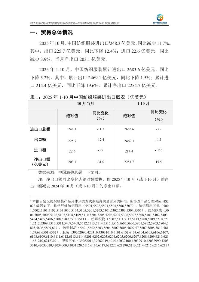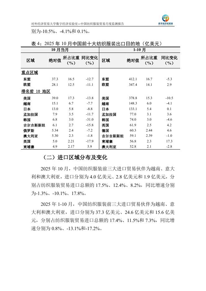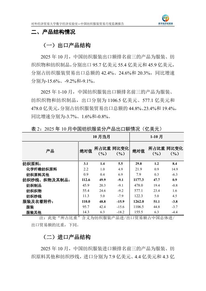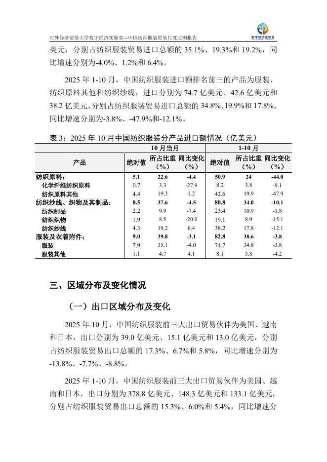 对外经济贸易大学:中国纺织服装贸易月度监测报告(2025年1-10月).pdf