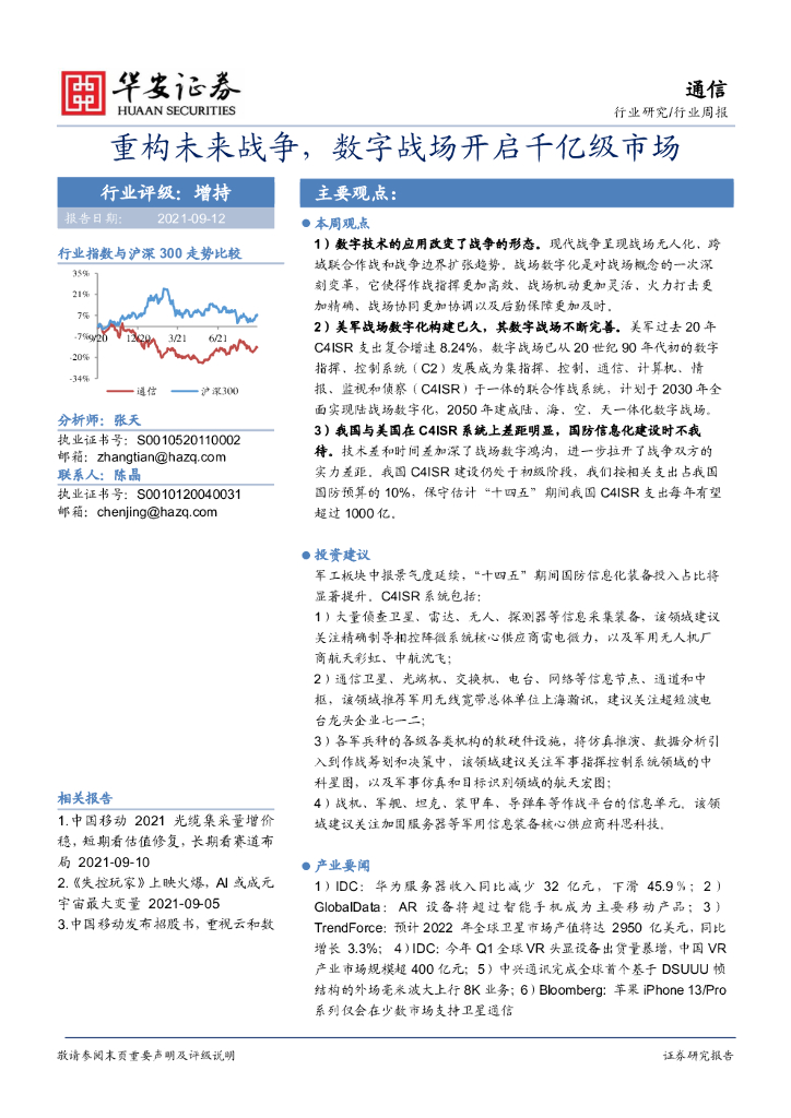 华安证券:通信行业周报:重构未来战争,数字战场开启千亿级市场.pdf