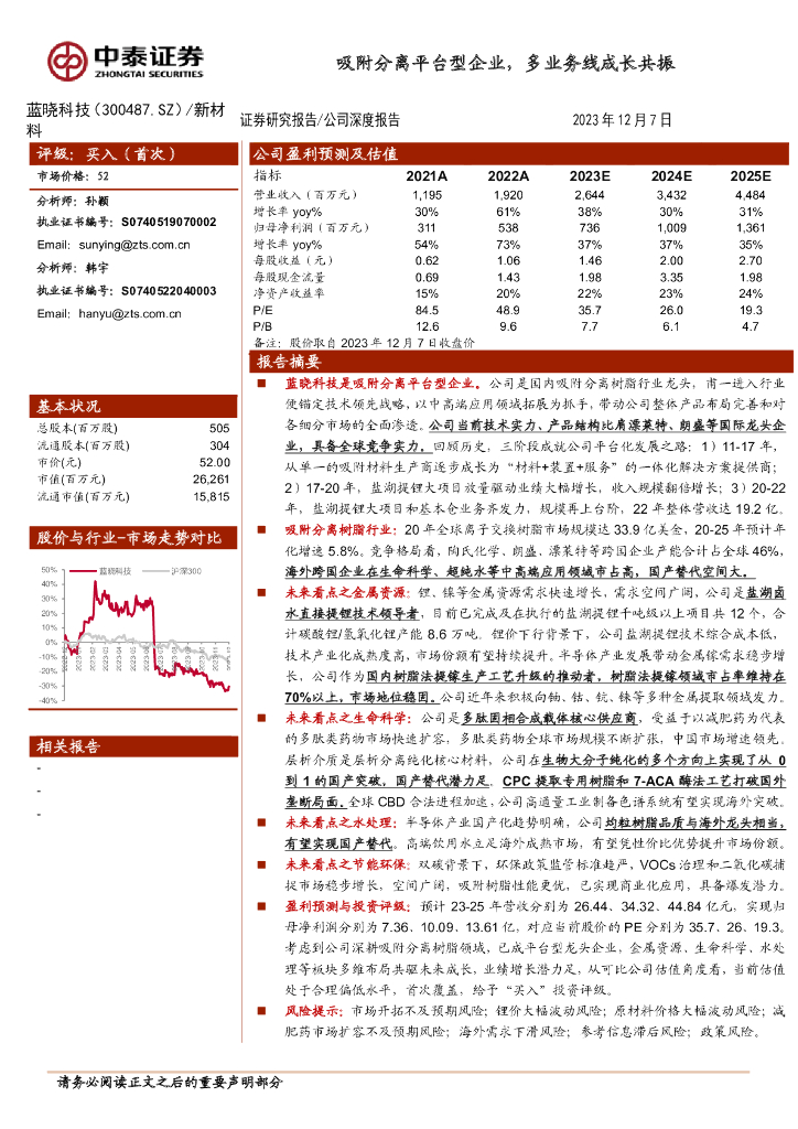 中泰证券:蓝晓科技(300487)-吸附分离平台型企业,多业务线成长共振.pdf