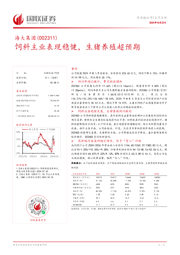 国联证券:海大集团(002311)-饲料主业表现稳健,生猪养殖超预期.pdf
