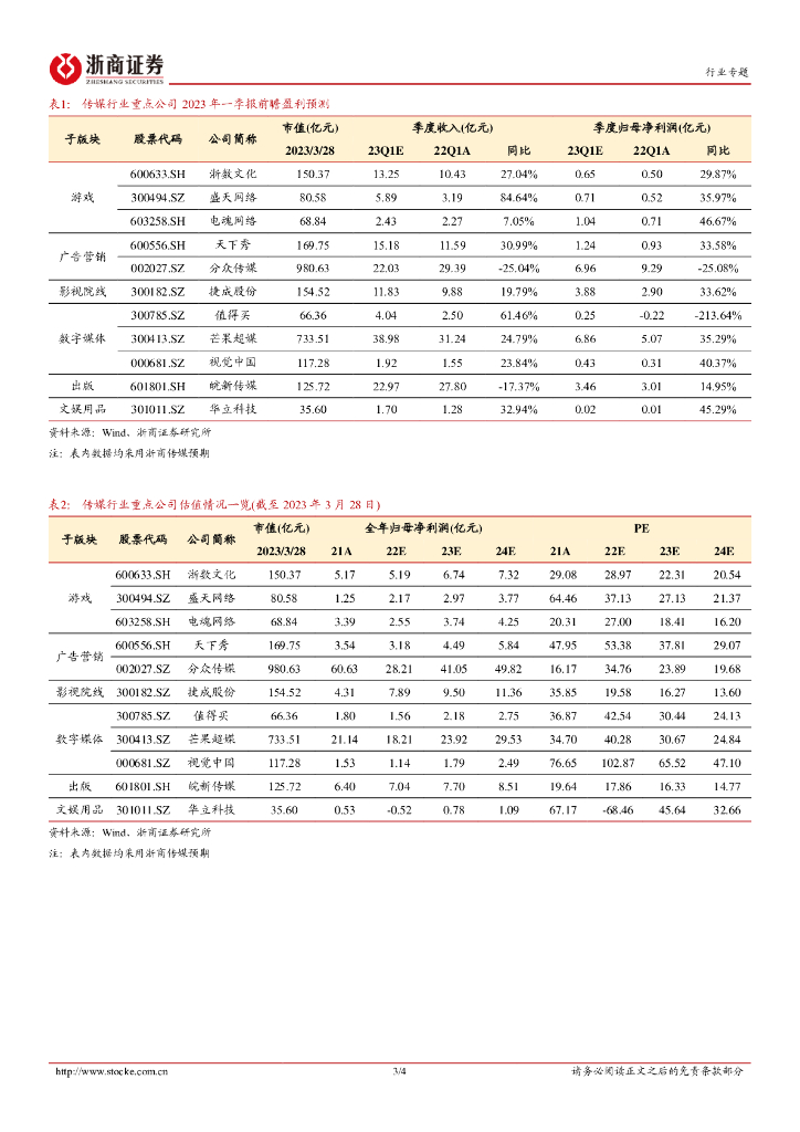 浙商证券:传媒行业一季报前瞻:线下需求复苏助力院线回暖,AI或将有效赋能行业降本提效.pdf