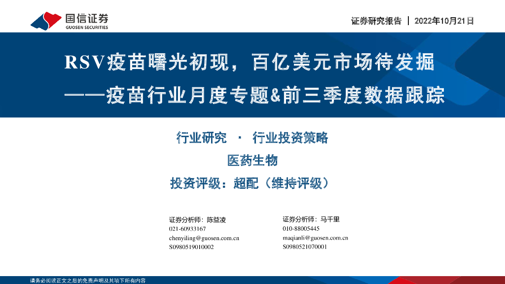 国信证券:医药生物:疫苗行业月度专题&前三季度数据跟踪-RSV疫苗曙光初现,百亿美元市场待发掘.pdf