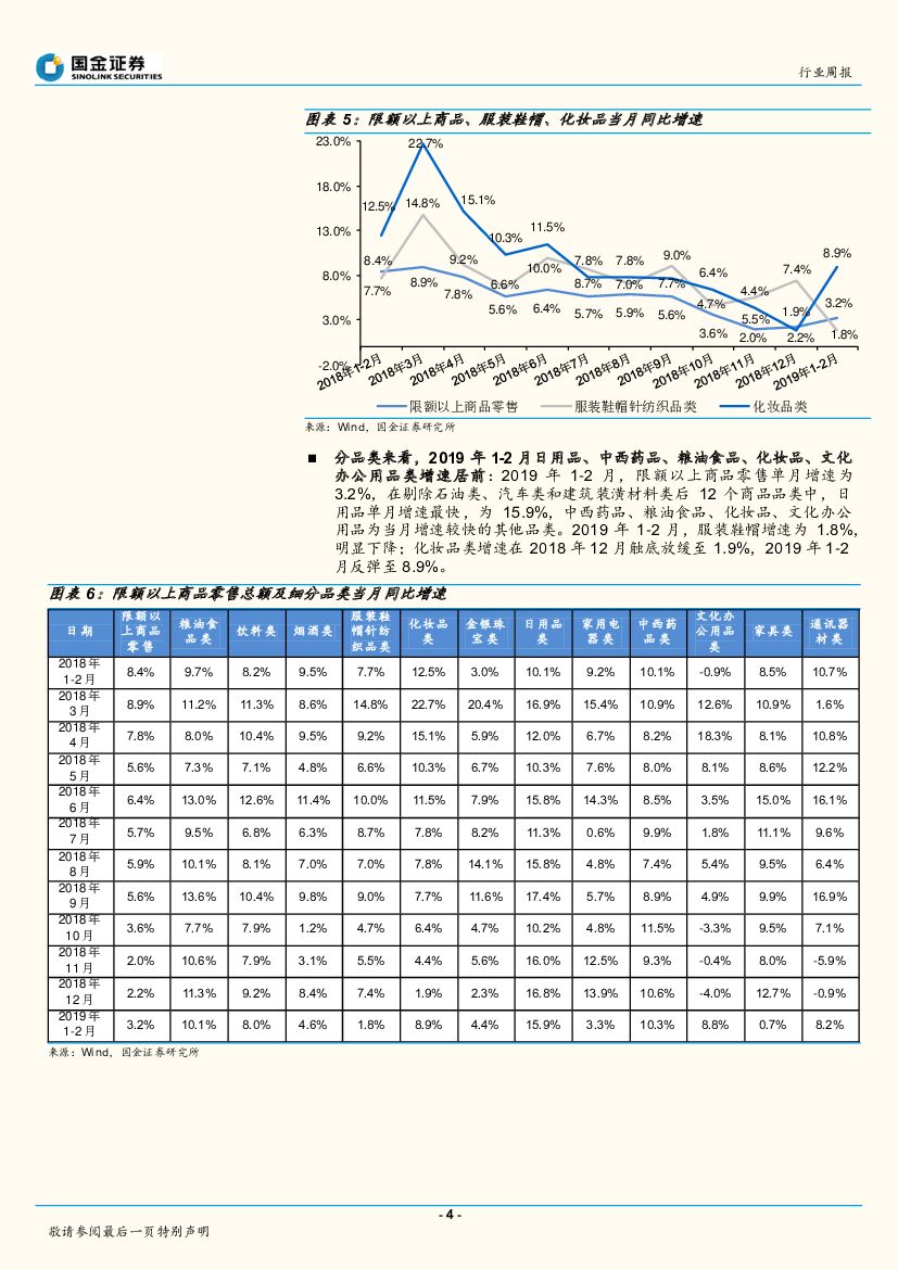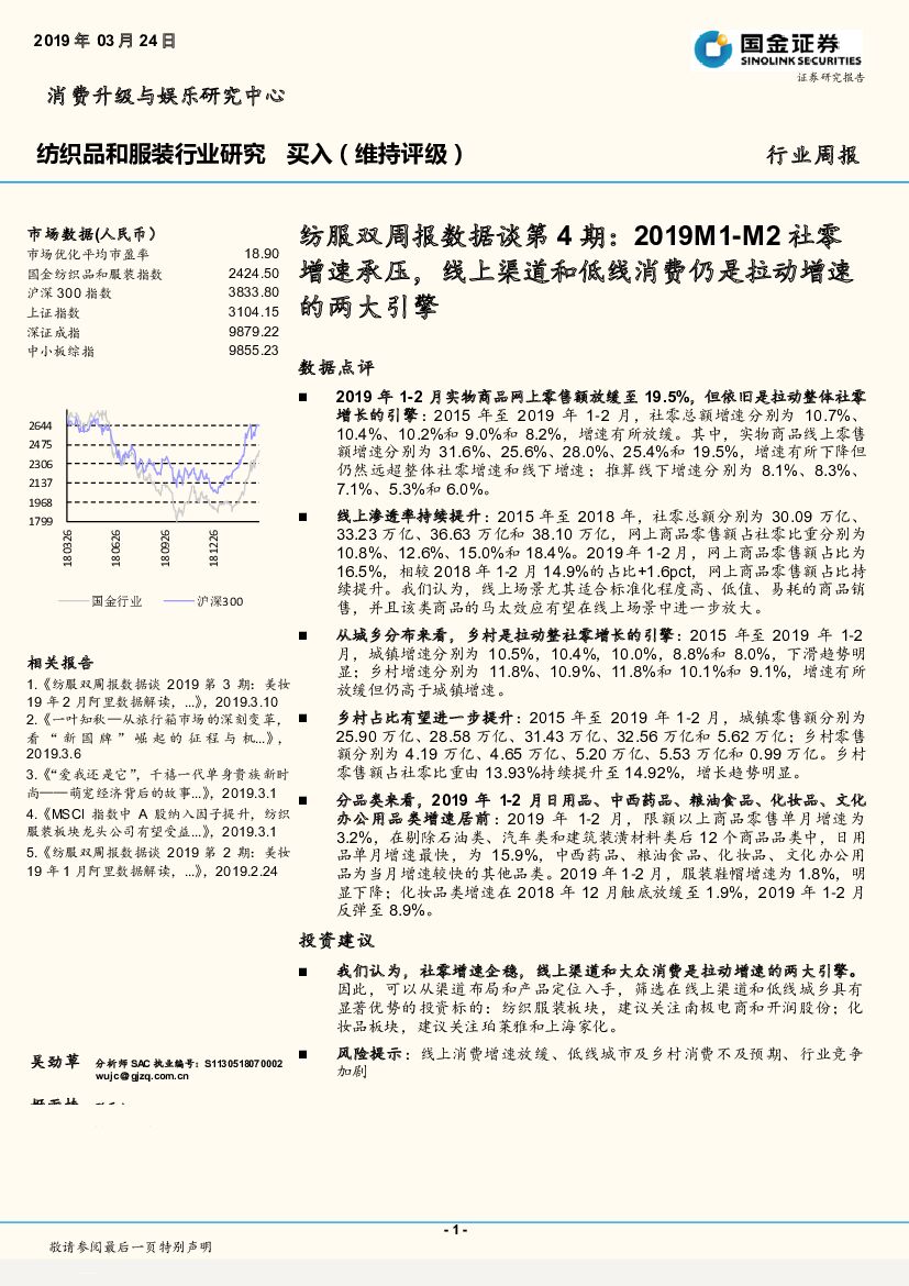 国金证券:纺服双周报数据谈第4期:2019M1-M2社零增速承压,线上渠道和低线消费仍是拉动增速的两大引擎.pdf