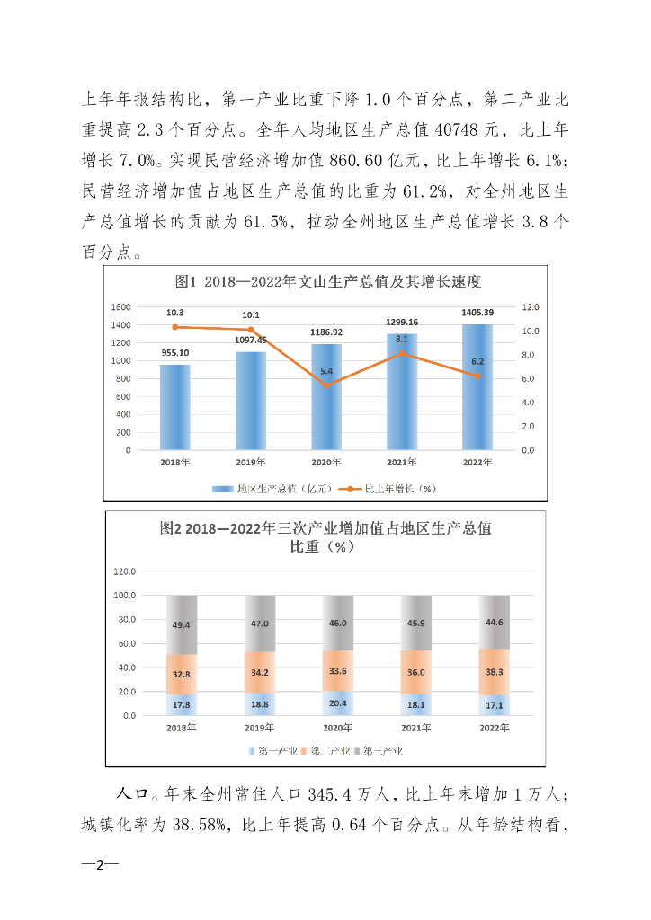 文山壮族苗族自治州2022年国民经济和社会发展统计公报.pdf