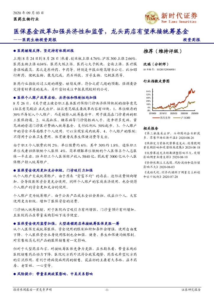 新时代证券:医药生物投资周报:医保基金改革加强共济性和监管,龙头药店有望承接统筹基金.pdf