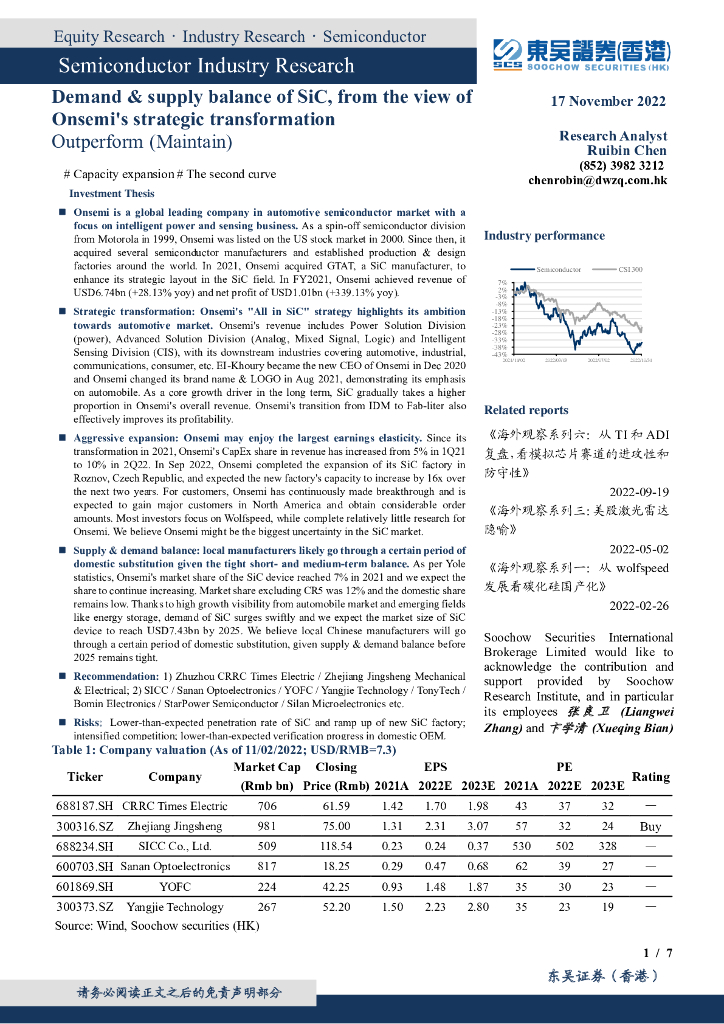 东吴证券国际经纪:半导体行业深度报告:海外观察系列八:从安森美战略转型看碳化硅供需平衡表.pdf