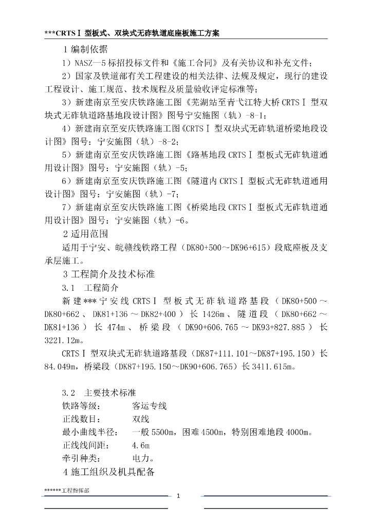 某铁路CRTSⅠ型板式、双块式无砟轨道底座板施工方案(附图纸).doc