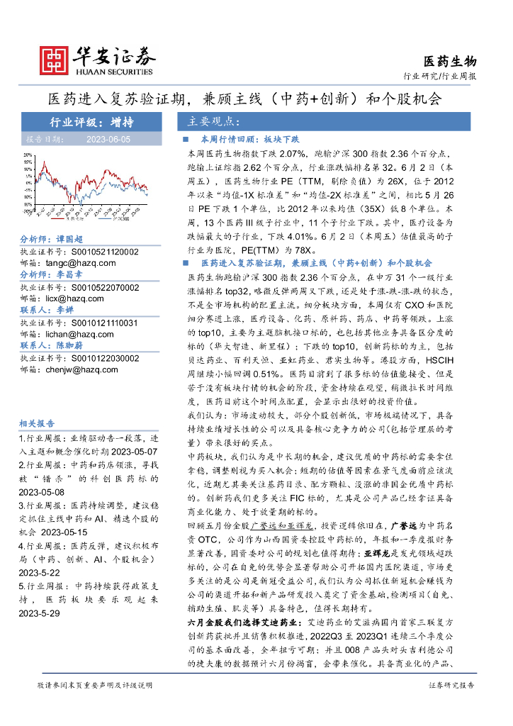 华安证券:医药生物行业周报:医药进入复苏验证期,兼顾主线(中药+创新)和个股机会.pdf