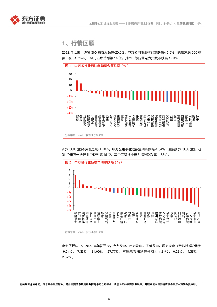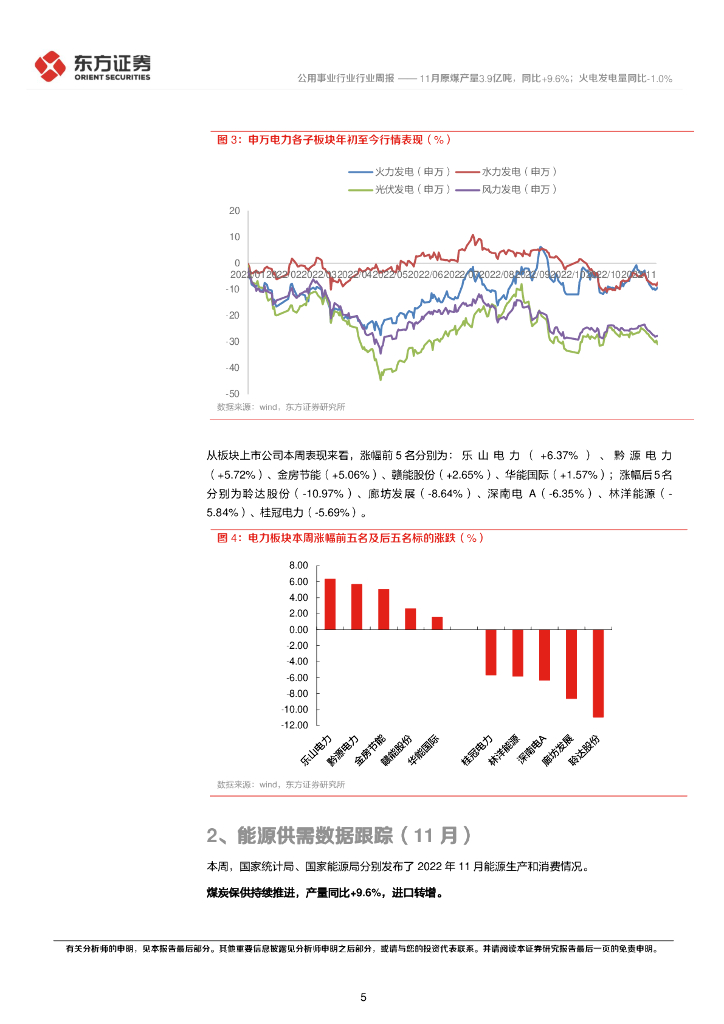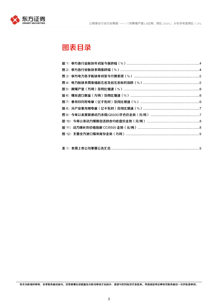 东方证券:公用事业行业周报:11月原煤产量3.9亿吨,同比+9.6%;火电发电量同比-1.0%.pdf