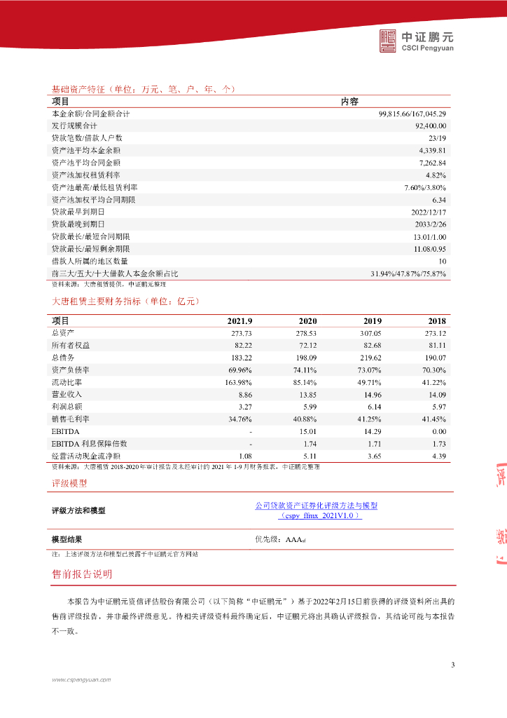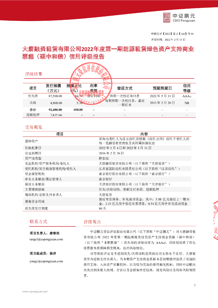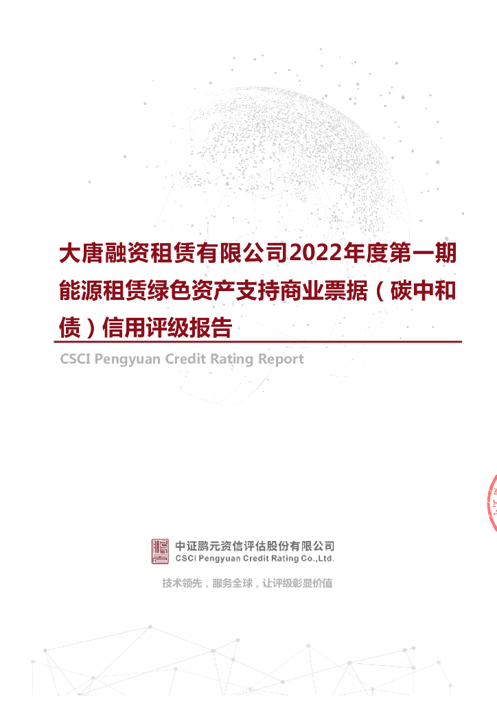 鹏元:大唐融资租赁有限公司2022年度第一期能源租赁绿色资产支持商业票据(碳中和债)信用评级报告.pdf