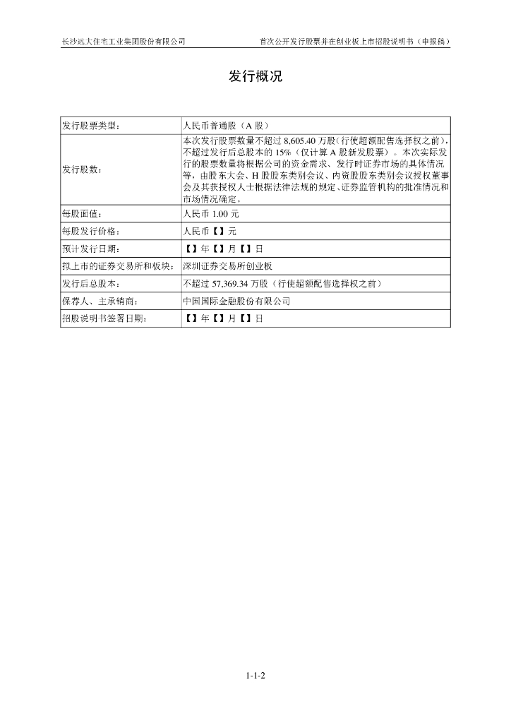 长沙远大住宅工业集团股份有限公司深交所创业板IPO上市招股说明书.pdf