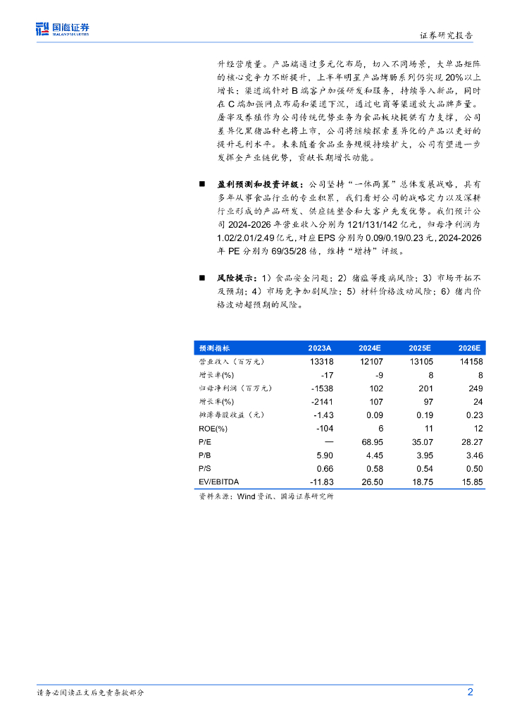 国海证券:龙大美食(002726)-公司动态研究:猪价回暖业绩扭亏,食品板块持续布局.pdf