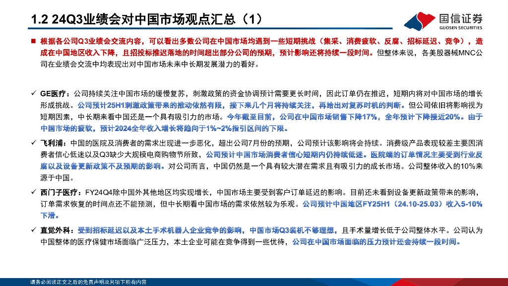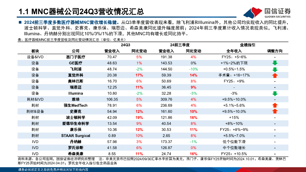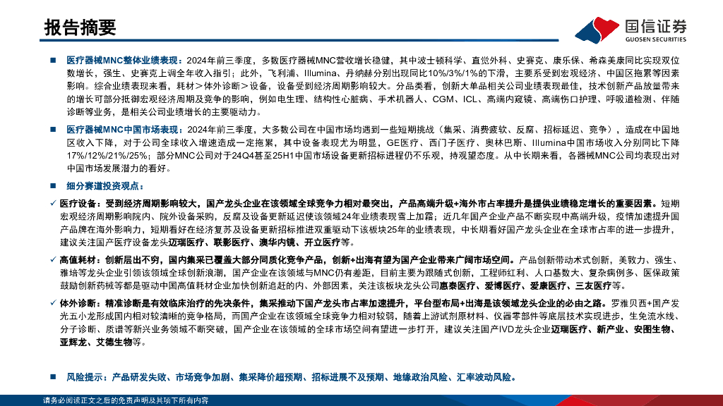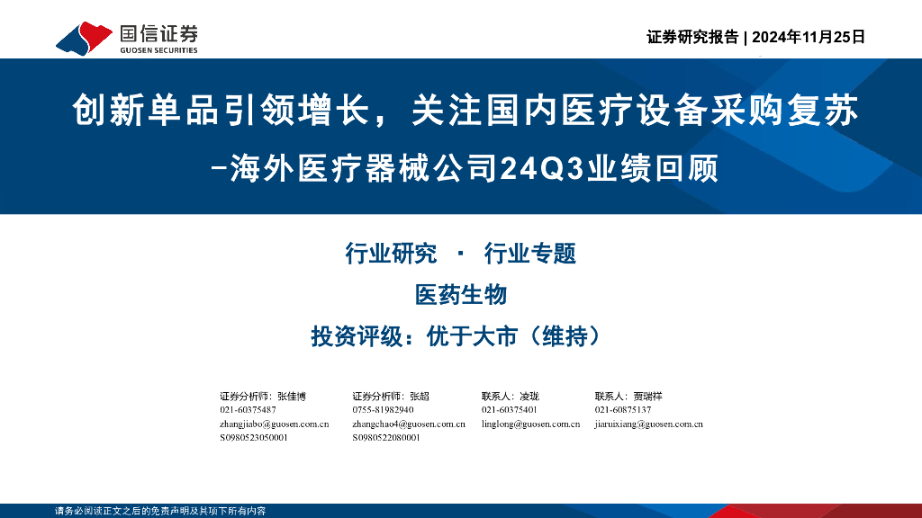 国信证券:海外医疗器械公司24Q3业绩回顾:创新单品引领增长,关注国内医疗设备采购复苏.pdf