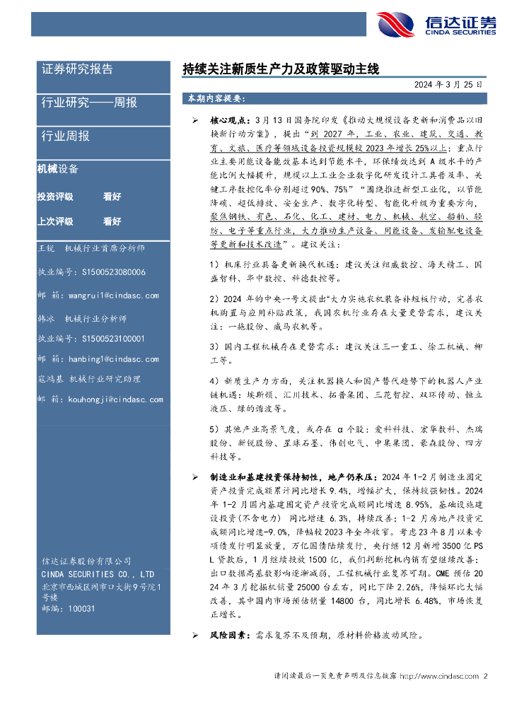 信达证券:持续关注新质生产力及政策驱动主线机械设备.pdf