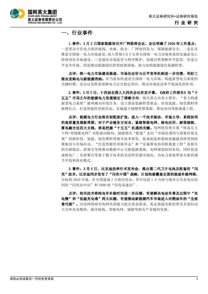 英大证券:电力能源行业周报