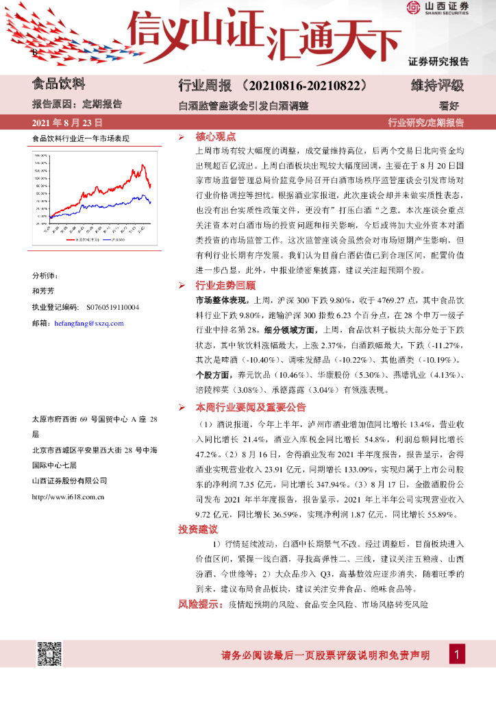 山西证券:食品饮料行业周报:白酒监管座谈会引发白酒调整.pdf