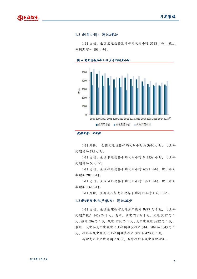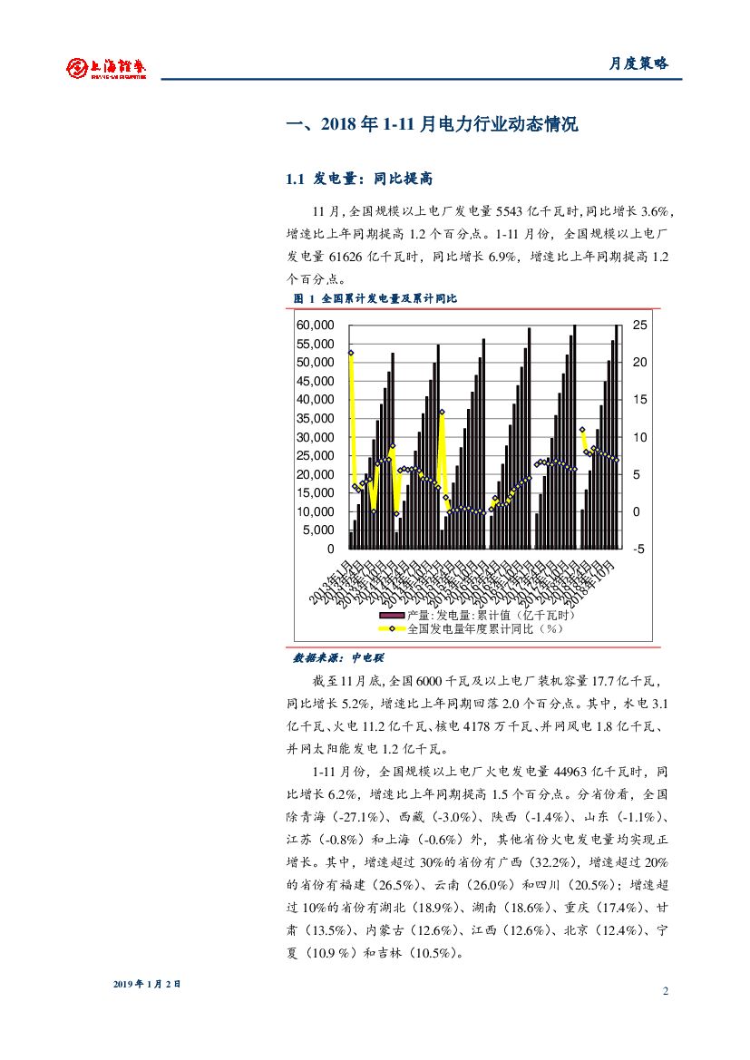上海证券:2018年12月电力行业月报:用电量增速同比提高,环比继续回落.pdf