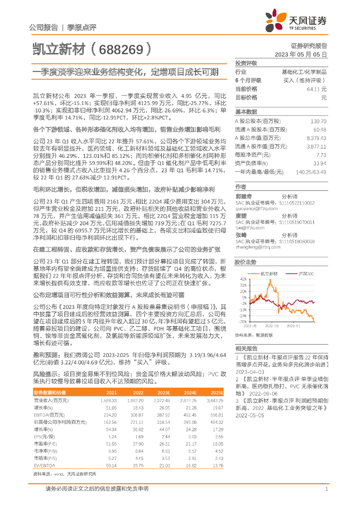 天风证券:凯立新材(688269)-一季度淡季迎来业务结构变化,定增项目成长可期.pdf