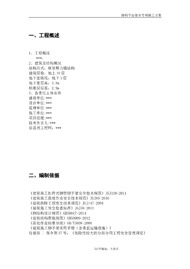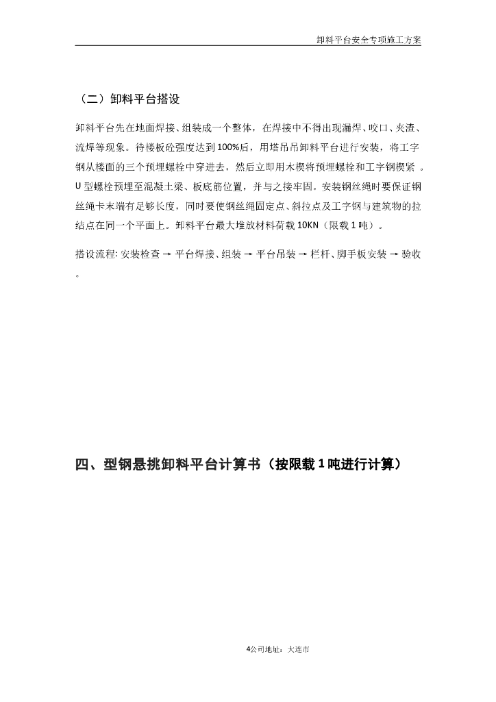 卸料平台安全专项施工方案(挑钢工具型平台).doc