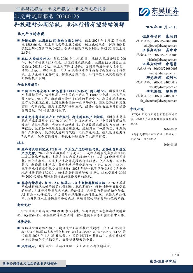 东吴证券:北交所定期报告:科技题材如期活跃,北证行情有望持续演绎-260125.pdf