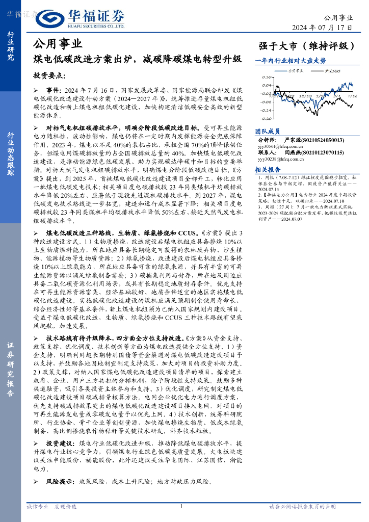 华福证券:公用事业:煤电低碳改造方案出炉,减碳降碳煤电转型升级.pdf