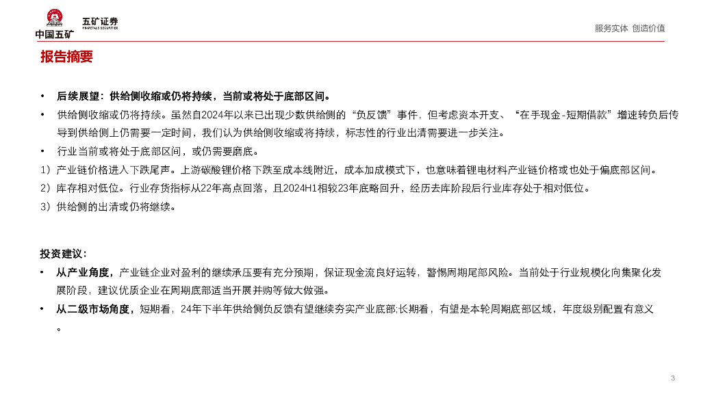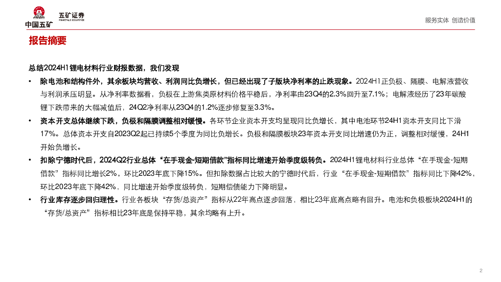 五矿证券:锂电材料行业2024H1财报分析:产业链价格或将进入下跌尾声.pdf