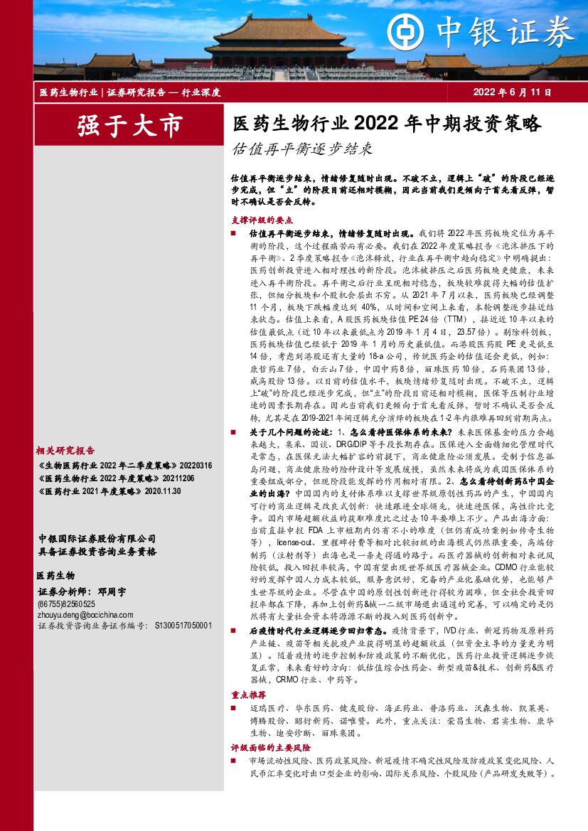 中银证券:医药生物行业2022年中期投资策略:估值再平衡逐步结束.pdf