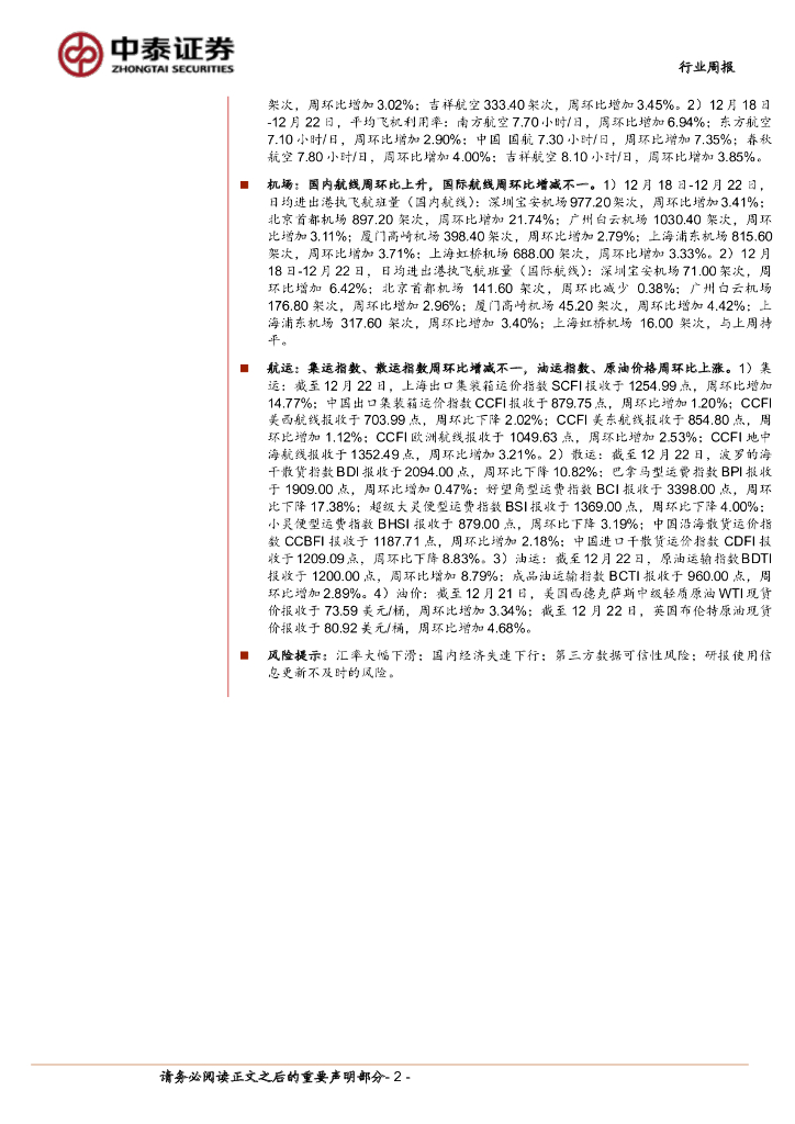 中泰证券:交运行业周报:元旦小长假即将来临,航空出行迎来小高峰.pdf