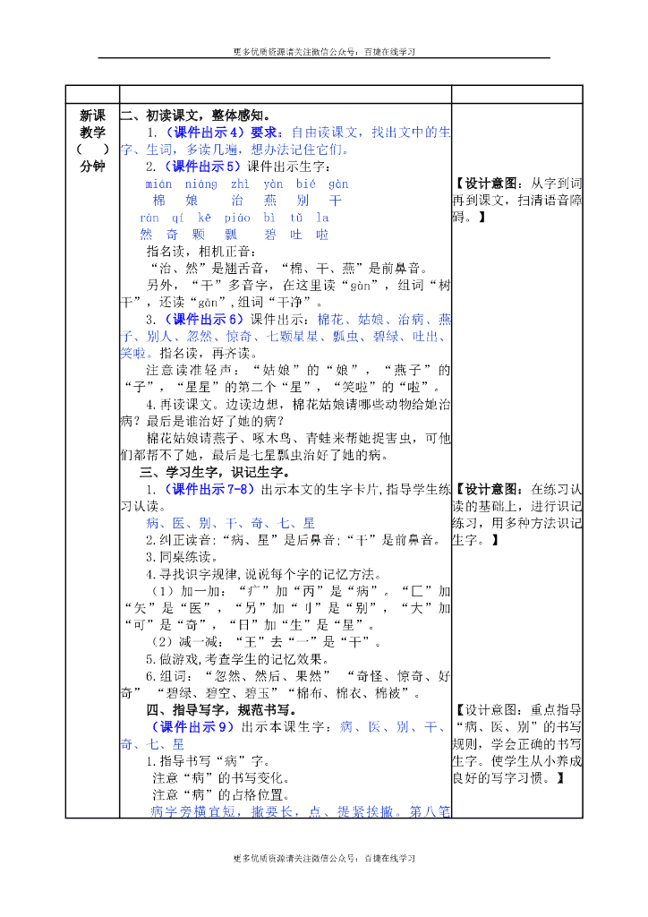 一年级语文下册一下--19 棉花姑娘.doc