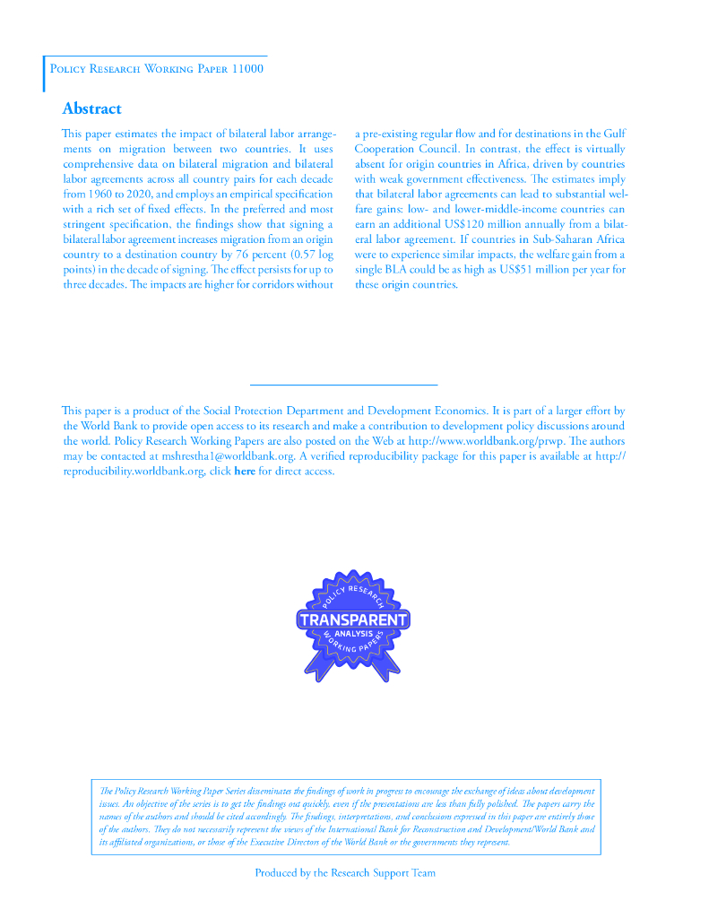 世界银行:双边劳工协议会增加移民吗?1960年至2020年的全球证据(英文版).pdf