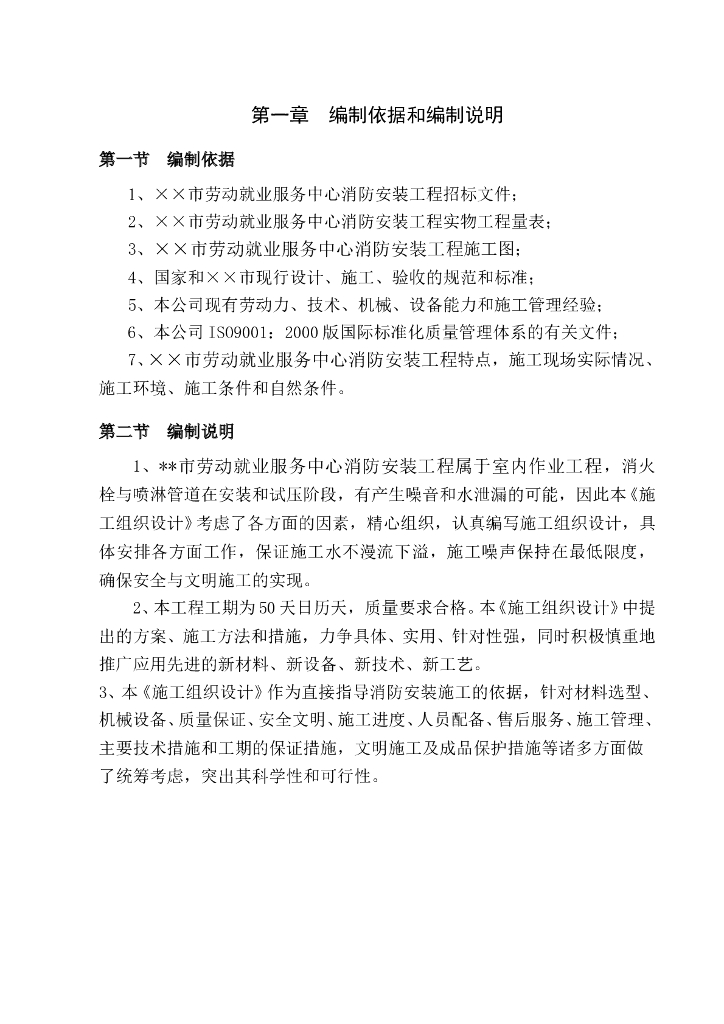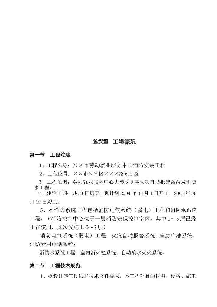 荥阳市劳动就业服务中心消防工程施工组织设计方案(Word.89页).doc