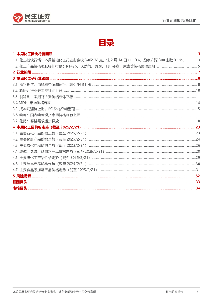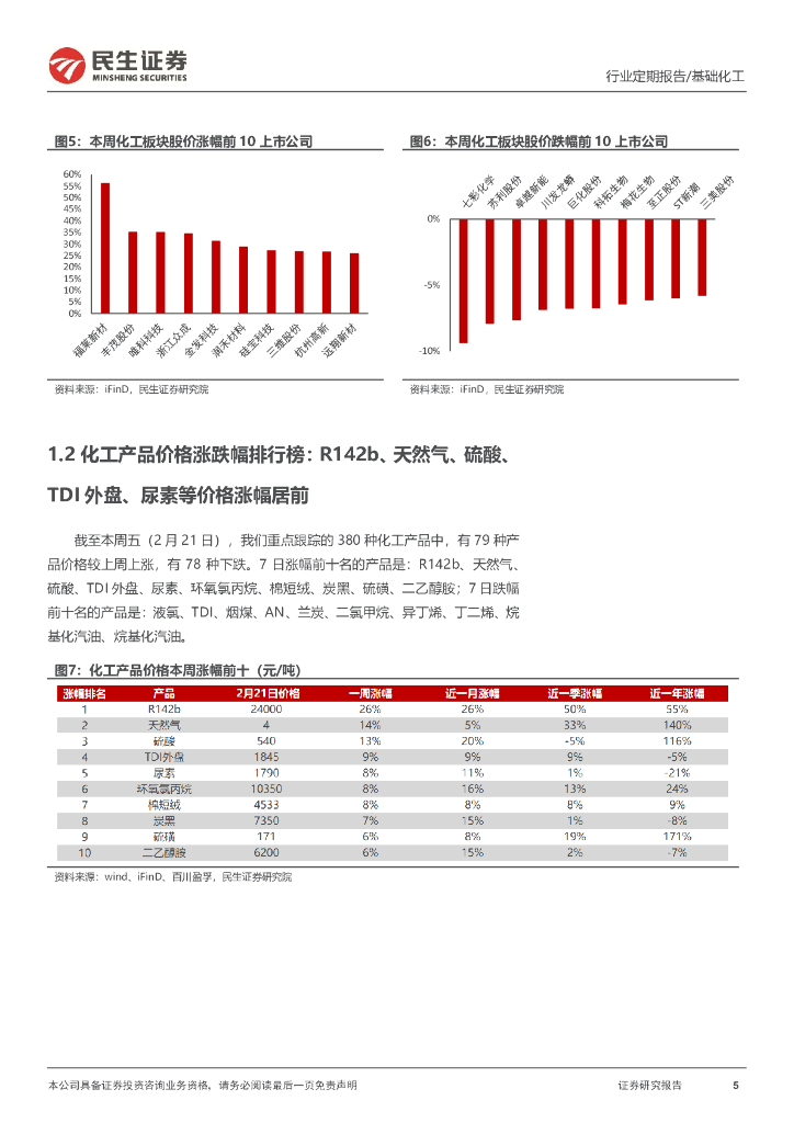 民生证券:化工行业周报(-):R142b、天然气、硫酸、TDI、尿素等价格涨幅居前.pdf
