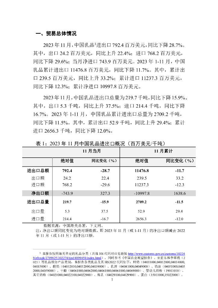 对外经济贸易大学:中国乳品贸易月度(2023年1-11月)监测报告.pdf