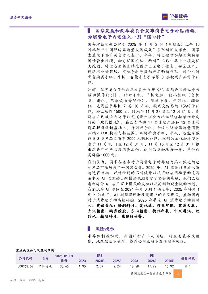 华鑫证券:电子行业周报:可穿戴设备、AIPC即将闪耀CES2025消费电子展,消费电子国补即将开启.pdf