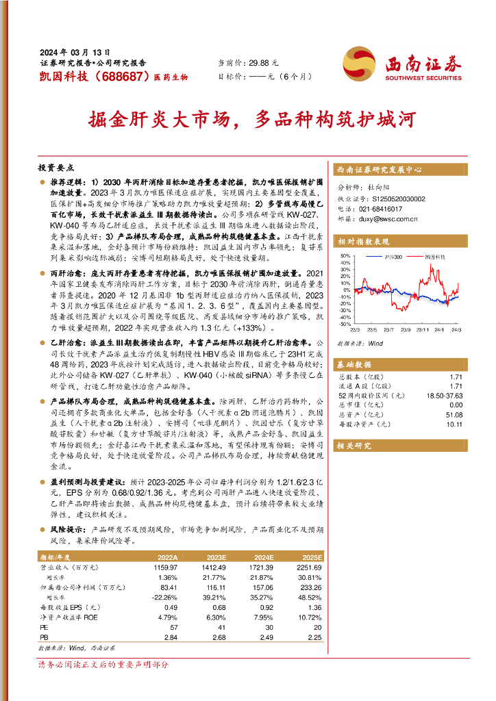西南证券:凯因科技(688687)-掘金肝炎大市场,多品种构筑护城河.pdf