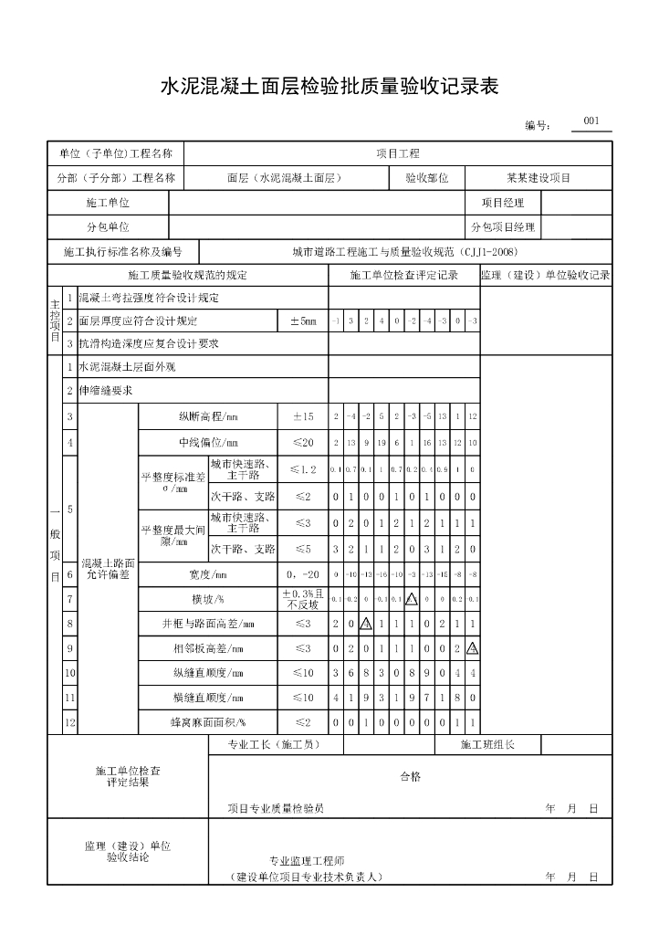 安徽城镇道路水泥混凝土面层验收记录表格.pdf