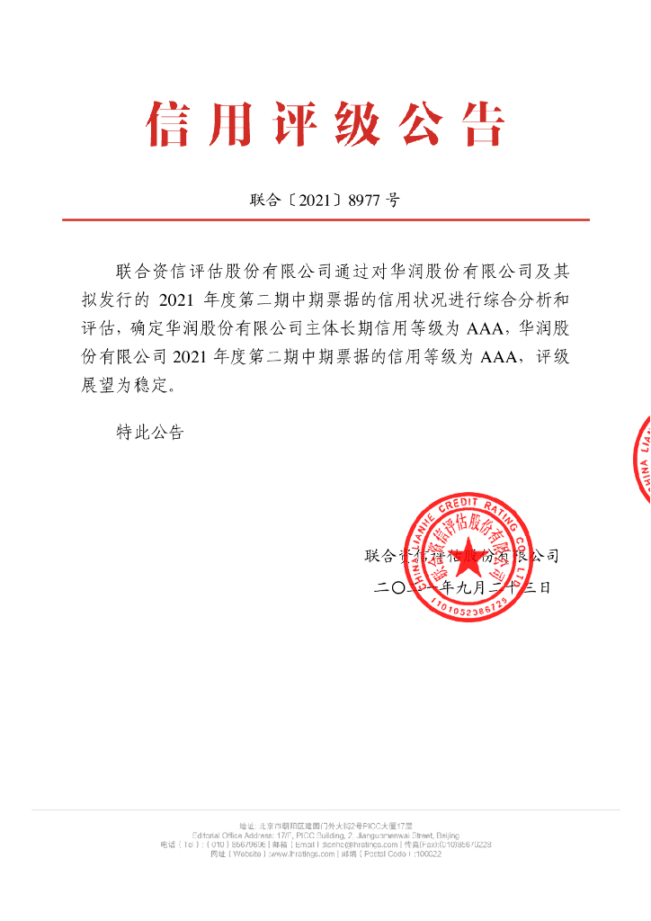 联合资信:华润股份有限公司2021年度第二期中期票据信用评级报告.pdf