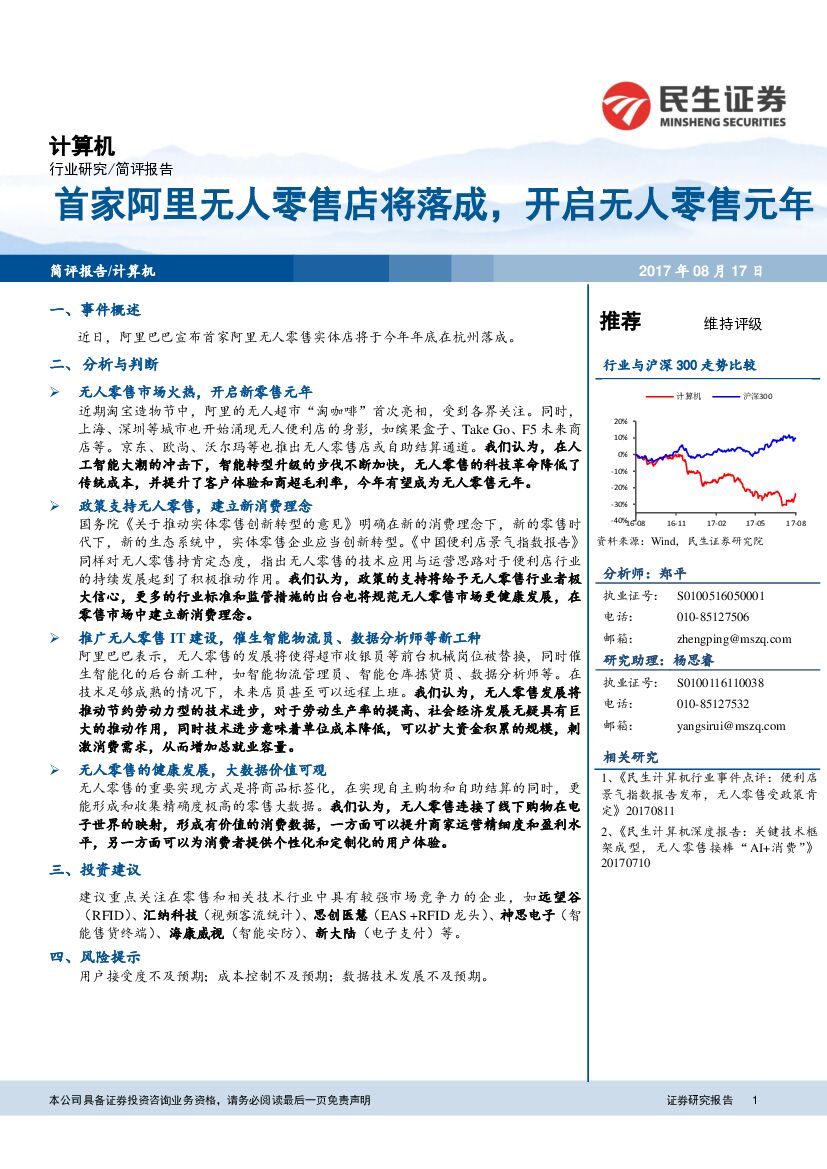民生证券:计算机:首家阿里无人零售店将落成,开启无人零售元年.pdf