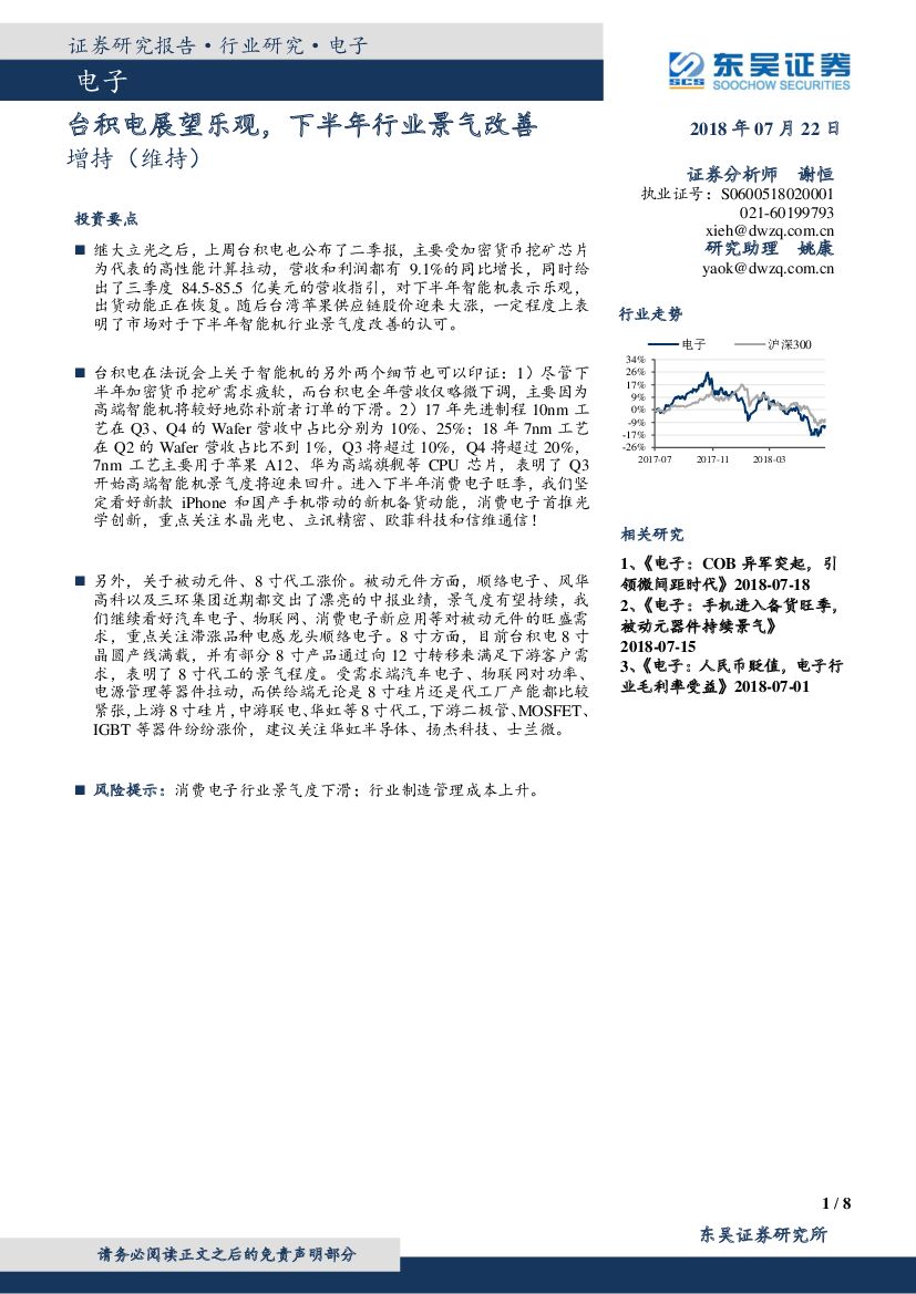 东吴证券:电子行业研究:台积电展望乐观,下半年行业景气改善.pdf