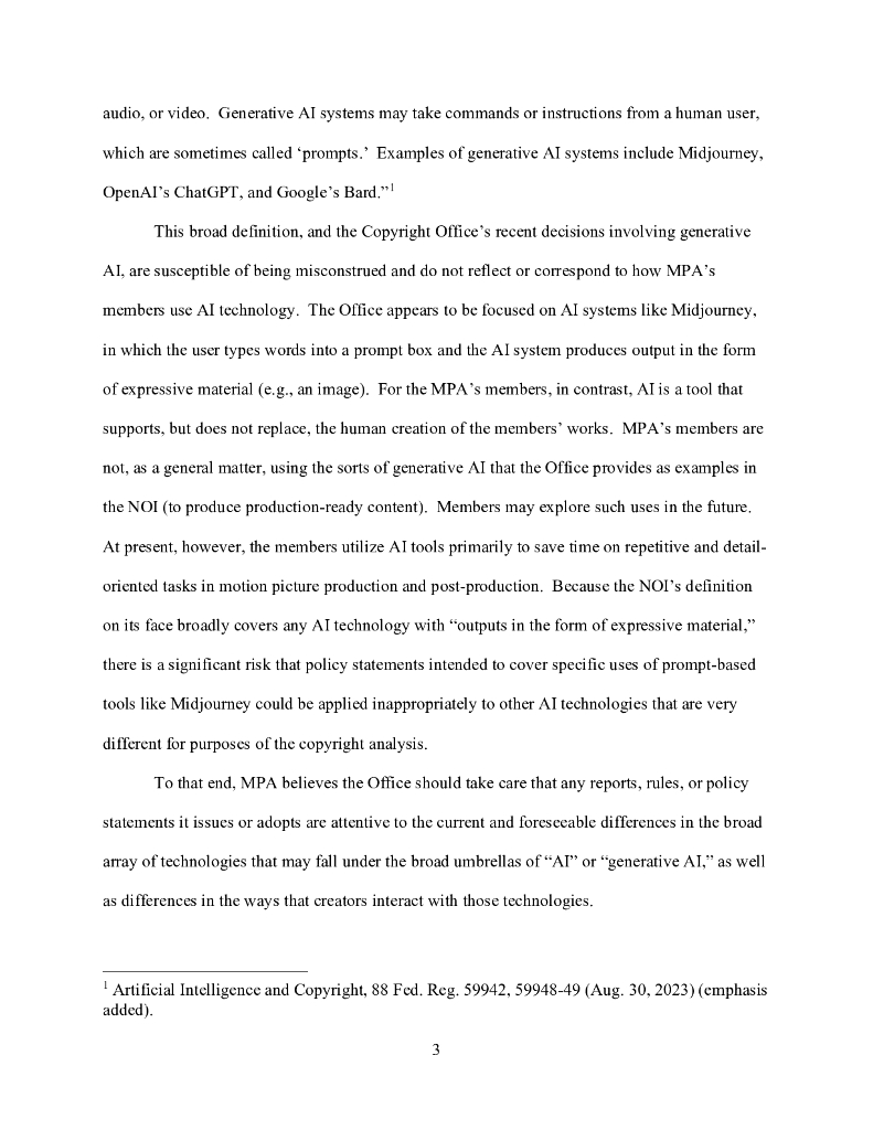 美国电影协会(MPA):MPA针对人工智能和版权调查通知向美国版权局发表的评论(英文版).pdf